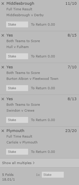 The accumulator is priced at 20.82/1 with bet365 at the time of writing and looks a good bet for what looks like an average Saturday of football.