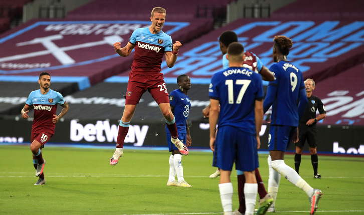 Tomas Soucek pictured above scoring the first of West Ham’s three goals against Chelsea in their 3-2 win in July